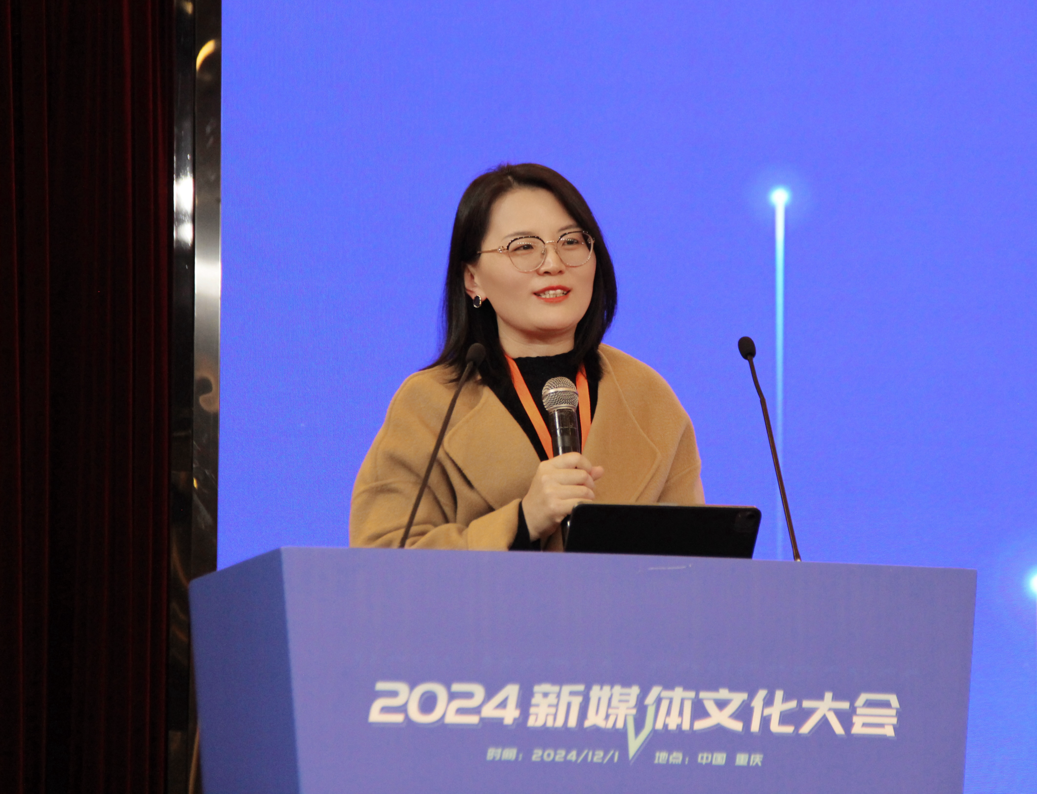 郭小安院长在大会上发布了《2024中国新媒体文化发展报告》(以下简称《报告》),对新媒体文化发展现状与趋势进行了深度总结。《报告》共由六个篇章组成,分别是新媒体文化发展的新特点、新转向及新趋势,新媒体文化行业发展动态,新媒体文化研究前沿,数字出版与文化出海发展动态,新媒体与城市文化出圈现象分析,新媒体文化与重庆城市形象推广。《报告》第一篇章梳理了“哈尔滨文旅热潮”“李子柒‘归来’”等“2024新媒体文化十大事件”,“新质生产力”“数字文化出海”等“2024新媒体文化关键词”,同时分析了“主流媒体建设”“数字文化产业”等具有代表性的“2024新媒体文化学术观点”。
