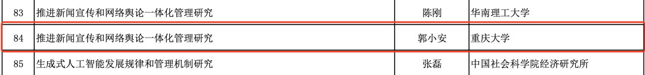 12月26日,全国哲学社会科学工作办公室公布了研究阐释党的二十届三中全会精神国家社会科学基金重大专项立项名单。郭小安教授作为首席专家申报的“推进新闻宣传和网络舆论一体化管理研究”获得立项,成为本年度51视频直播