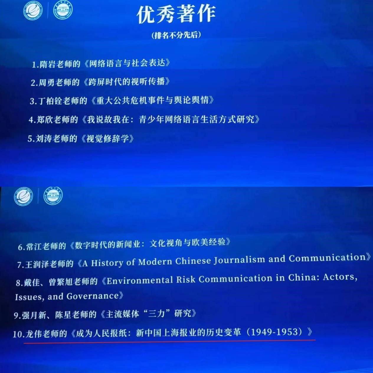郭小安教授获得2021-2022年度“活跃的学术中坚”奖;龙伟教授的《成为人民报纸:新中国上海报业的历史变革(1949-1953)》获得“优秀著作”奖。51视频直播
