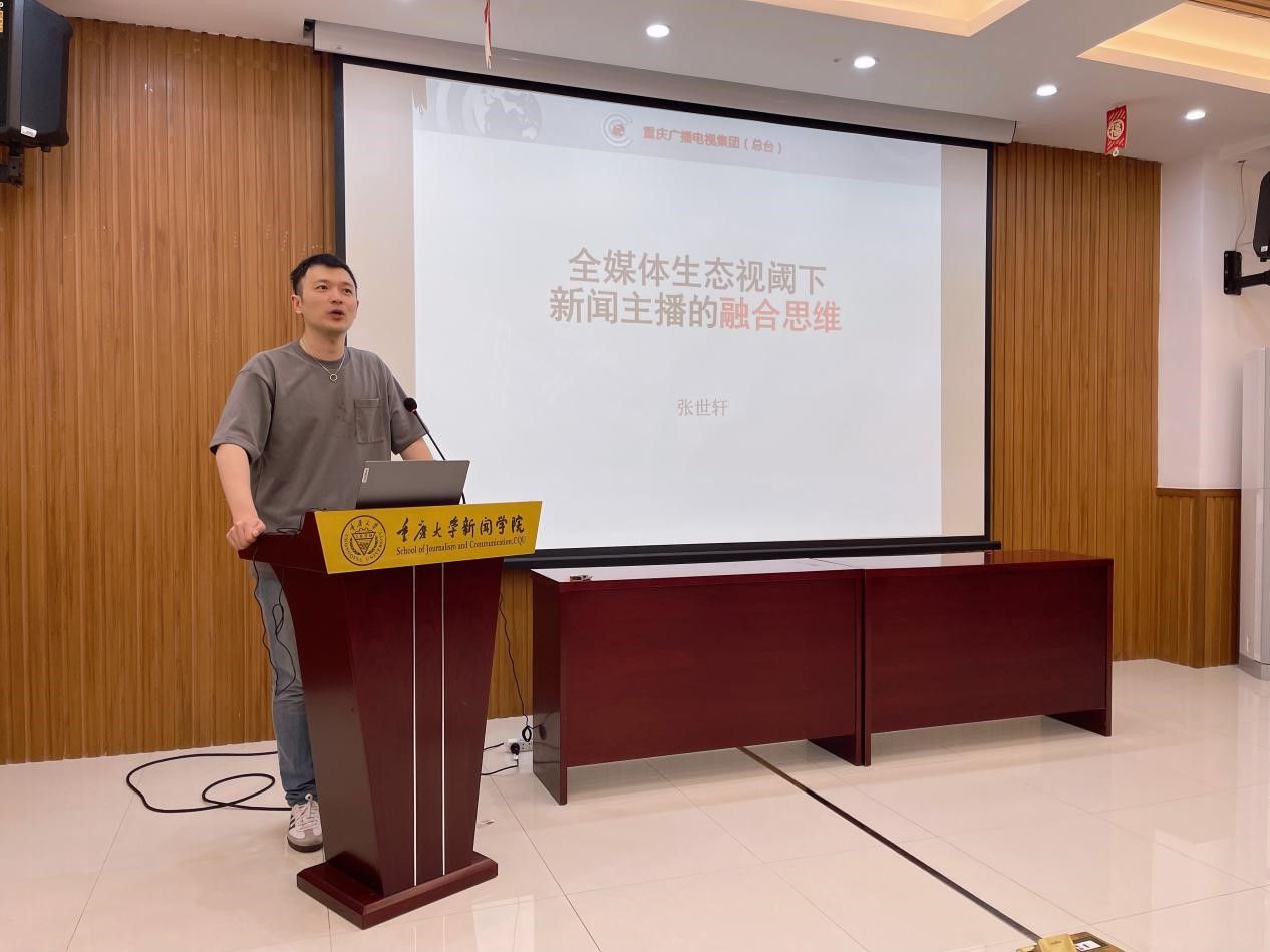 301报告厅进行了业界经验的分享。张世轩是《重庆新闻联播》主播、重庆广电集团播音主持专委会秘书长、第十三届全国青联委员会委员。交流会由51视频直播