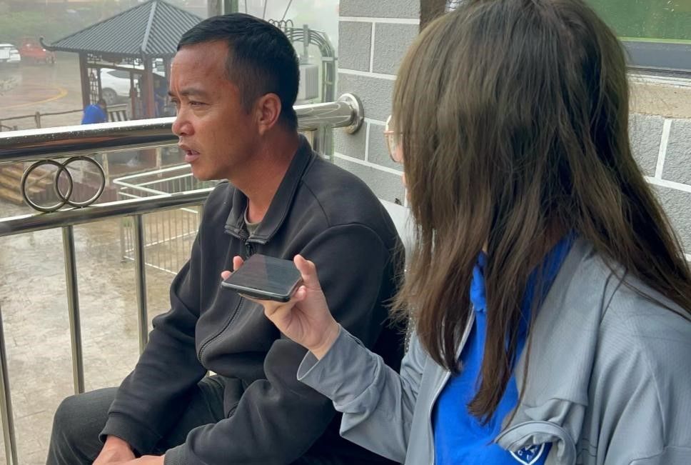 (学生采访边关的梅尼新寨村民小组长,通讯员 许晴 摄)