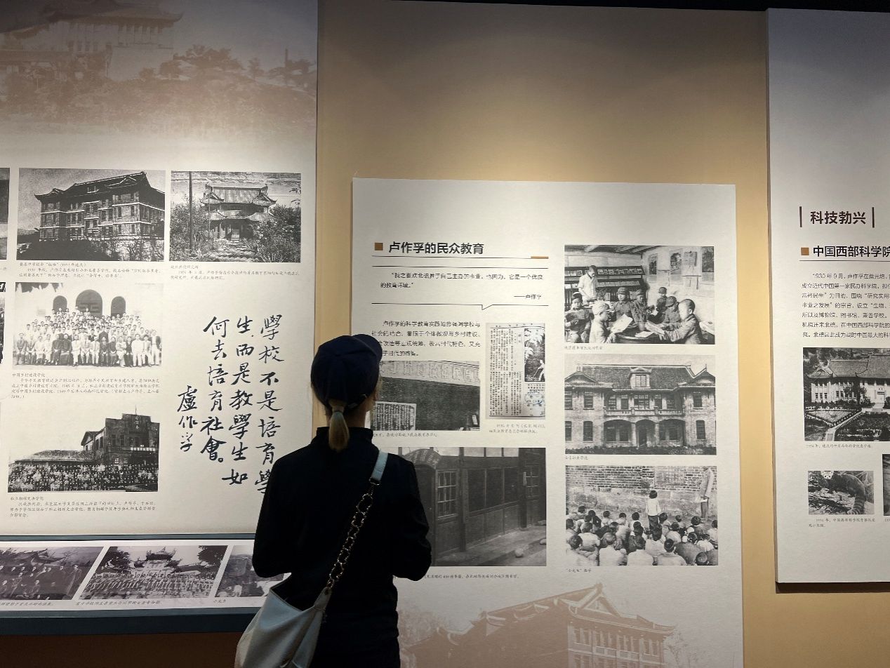 杰出校友,著名爱国企业家,更是廉洁奉公的典范。在庄严肃穆的纪念馆内,同学们细致观摩珍贵的历史照片、文献资料和实物展陈。从民生公司的创立发展到抗战时期的“宜昌大撤退”,从乡村建设实验到教育救国实践,每一件展品都生动展现了卢作孚先生实业救国、克己奉公的高尚品格。