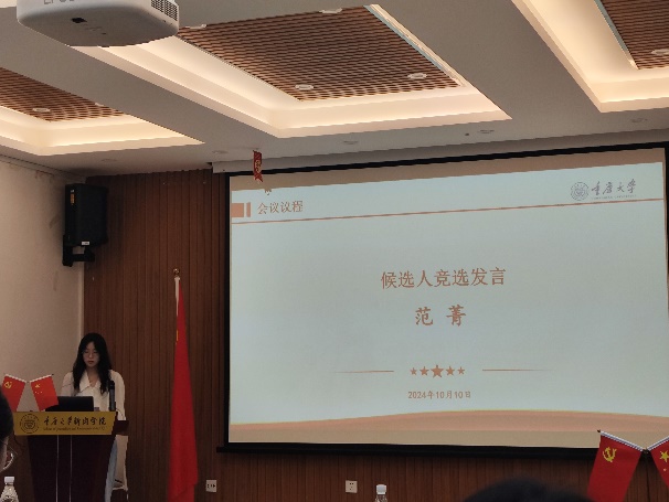 换届选举是本次大会的重点。党委组织员魏媛同志宣读了大会选举办法,并获得了全体党员的一致赞成。每位候选人依次上台进行竞选发言,展示了自己的优势和工作设想,表达了为支部服务的决心和信心。在严格遵守选举程序的前提下,大会通过无记名投票的方式,差额选举产生了新一届研究生三支部委员会。整个选举过程公开透明、公平公正,充分体现了党员的民主权利和党组织的凝聚力。