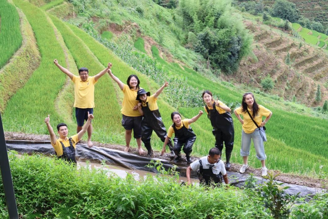 在绿春县青少年活动中心,小朋友们嘴里叼着棒棒糖,和实践团成员一起完成了学习“小记者”技能的活动,和我们一起在摄像机里留下天真淳朴的笑容;虾芭村的田埂上,看着我们笨拙捉鱼的模样,泥塘里的村民直起身,抹一把汗,爽朗的笑声混合着太阳雨,传递着包容与鼓励;伴着夕阳的村户家中,我们品尝美味的哈尼蘸水鸡,热情好客的婆婆一直在给我们添饭加菜,那带着些许羞涩的笑容,在她布满皱纹的脸上漾开,浑浊的眼睛里闪烁着真诚的善意。在我的相机里,这样淳朴友善的笑容还有很多,哈尼族服装店里的小姐姐、玛玉茶山上的采茶阿姨、热情好客的返乡青年阿希、助农直播间里的老大哥等;看得出来,即使生活在物质条件相对艰苦的山村,绿春人民笑容中普遍流露出的那种坚韧、乐观和对生活的热爱,极具感染力,也十分打动我。