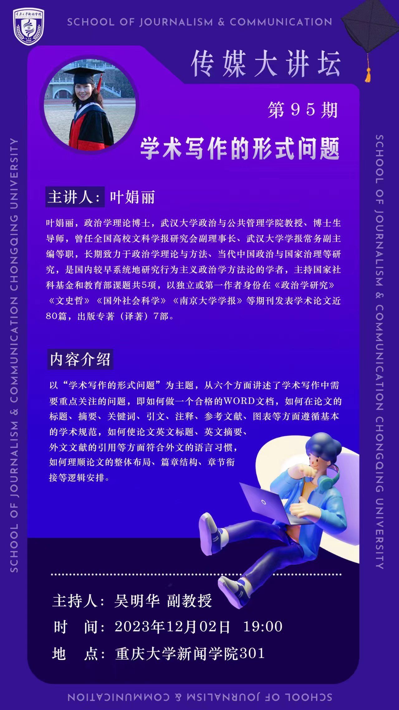 【业界前沿讲座】讲座题目:从记者到作家